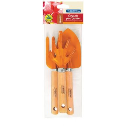 CONJUNTO DE FERRAMENTAS P/ JARDIM 3 PEÇAS CABO DE MADEIRA
