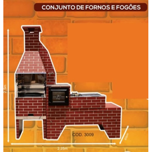 CHURRASQUEIRA CONJUNTO FORNO E FOGÃO TIJOLO VERMELHO 2,25M X 2,50M